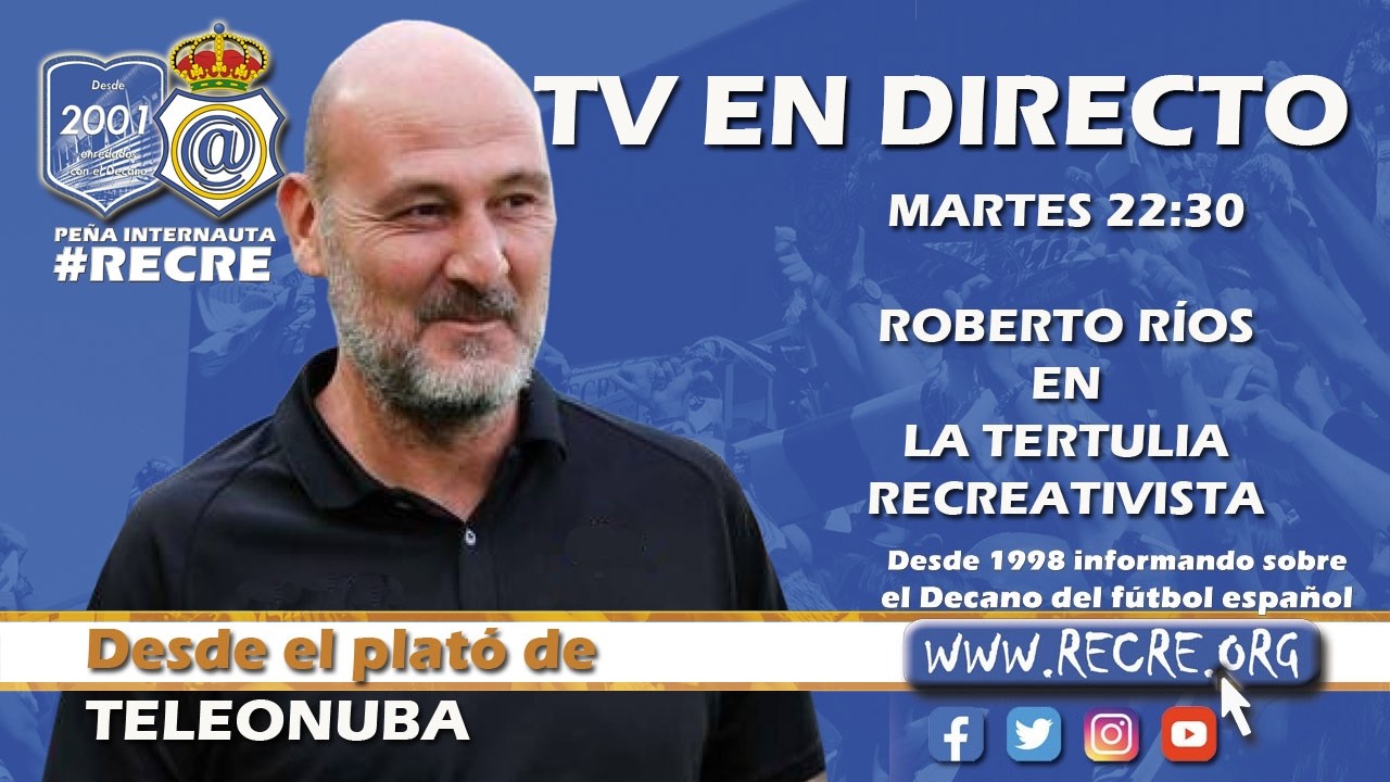 El director deportivo del Real Club Recreativo de Huelva, Roberto Ríos, será el invitado de hoy en la edición nº 1302 de La Tertulia Recreativista, que cada martes dirige y presenta José Luis Camacho Malo en Teleonuba.