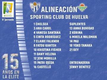 SPORTING HUELVA, CIUDAD QUE MARCA: Chelsea, Ana Carol, Vanesa Santana, Cinta Rodríguez, Claire Falknor, Fatou Kanteh (Mikela Waldman, 73'), Kristina Fisher (Yoko Tanaka, 59'), Dany Helena, Jeni Morilla (Gey, 73'), Patri Ojeda y Castelló.