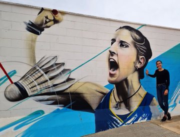 “Sin palabras. Muchísimas gracias“. Así de asombrada ha dejado Jacobo Palos a Carolina Marín. El artista onubense, que se dedica al muralismo y la aerografía, ha captado la atención de la mejor deportista de la historia de Huelva, con un espectacular mural dedicado a la figura de la Campeona Olímpica, triple Campeona del Mundo y cuádruple Campeona de Europa de bádminton.