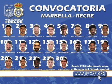 El Recreativo de Huelva visita hoy a las 18:00 horas al Marbella F.C. en el Estadio Municipal Antonio Lorenzo Cuevas de la localidad costasoleña. Claudio Barragán desplazó ayer sábado a 21 jugadores, de los que tendrá que descartar a uno para este partido. Alberto Martín y Alexander Szymanowski se han unido a las bajas por COVID-19 de Matheus Santana, que dio positivo en los test de este jueves, y Adrián Moyano, que hoy termina su periodo de cuarentena.