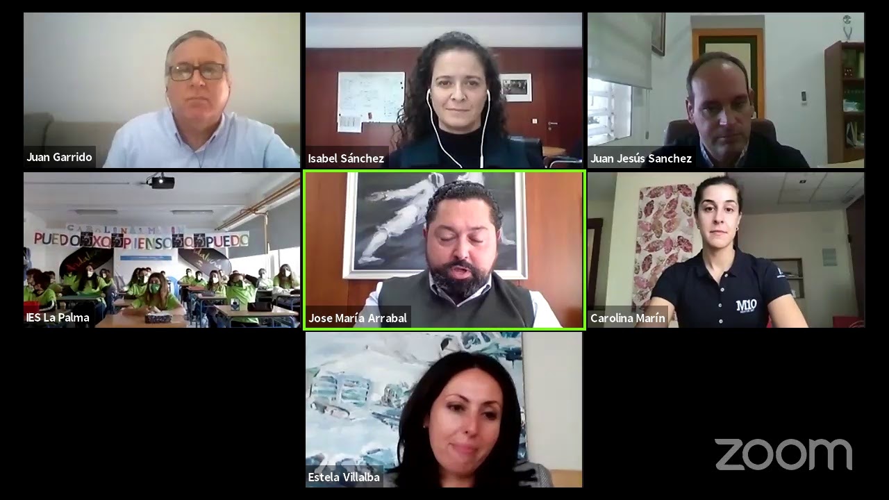 La onubense Carolina Marín participó en una sesión telemática del programa 'Mentor 10' de la Junta de Andalucía, donde tras saludar con un "hola", se disculpó perdón ante el resto de participantes en la videoconferencia: "perdonad el retraso, acabo de terminar de entrenar y he subido corriendo a estar con vosotros".