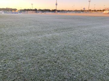 El Recreativo de Huelva completó ayer su primer entrenamiento de 2021 en una ciudad deportiva que amaneció con una capa de escarcha sobre el césped debido al frío de la noche en Huelva capital.