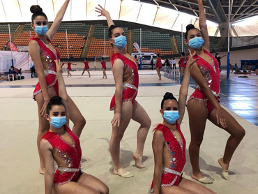 El conjunto formado por Aisa, Paula, Sandra, Erika y Sofía, perteneciente a la categoría cadete, competía con un difícil ejercicio de 5 aros. Estaban acompañadas por su entrenadora Sara Muñoz.