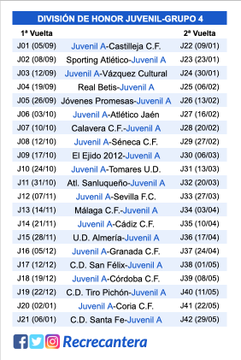 La Real Federación Española de Fútbol sorteó el calendario de División de Honor Juvenil, donde por 16ª temporada jugará el juvenil A del Recreativo de Huelva.