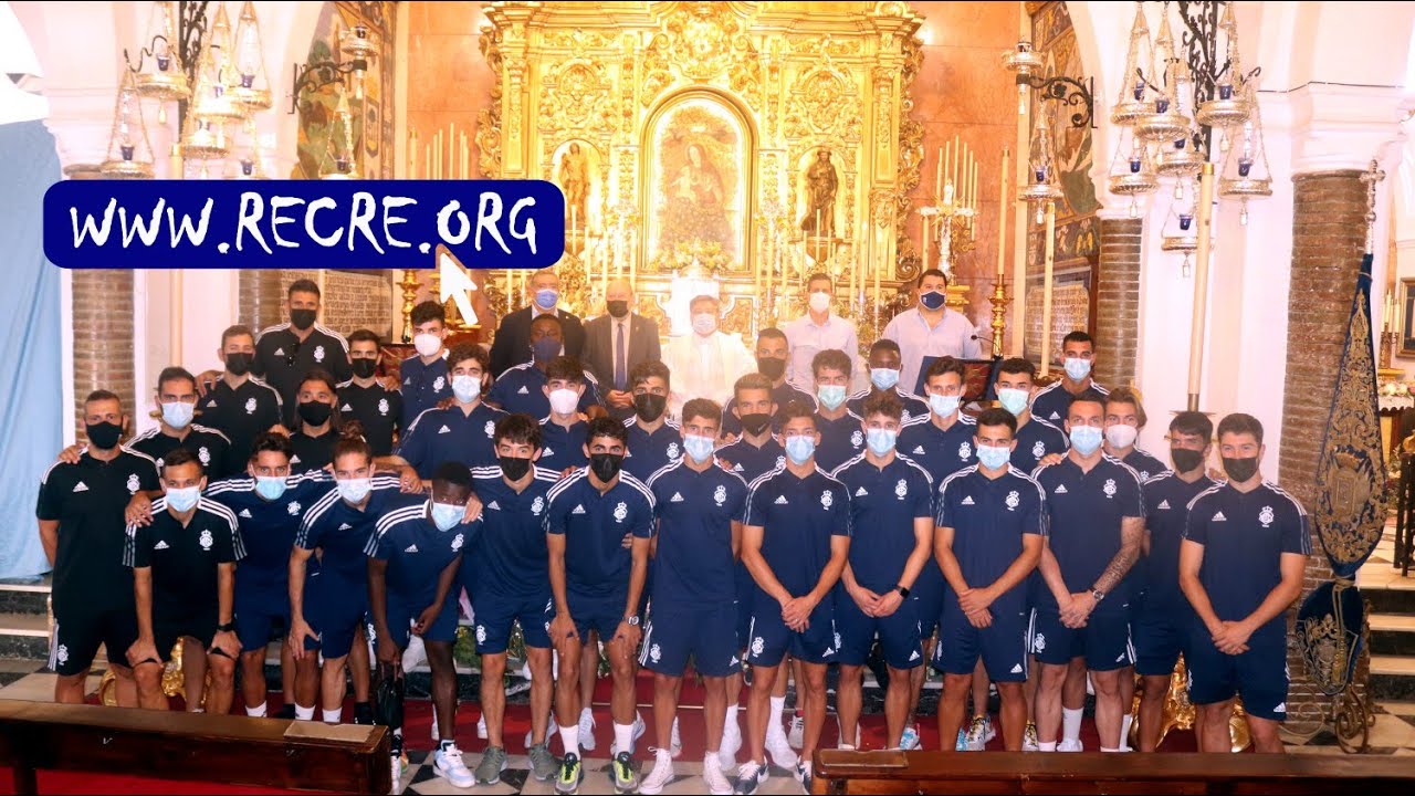 La primera plantilla del Real Club Recreativo de Huelva, cuerpo técnico, médico, resto de empleados y consejo de administración realizaron este lunes la tradicional ofrenda a la Virgen de la Cinta, patrona de Huelva, en su santuario del Conquero.