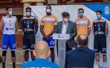 El alcalde de Huelva, Gabriel Cruz; y el presidente del Club Baloncesto Enrique Benítez, Juan Carlos Vizcaíno; han presentado en la tarde de este miércoles en el patio del Ayuntamiento las nuevas equipaciones que lucirá esta temporada la primera plantilla del C.D.B. Enrique Benítez, con el eslogan ‘Huelva te saluda’. Un acto que ha contado también con la asistencia de la concejala de Participación Ciudadana y Deportes, María Teresa Flores; el concejal de Turismo, Promoción de Huelva en el Exterior y Universidad, Francisco Baluffo; y el entrenador, Gabriel Carrasco, así como varios jugadores.