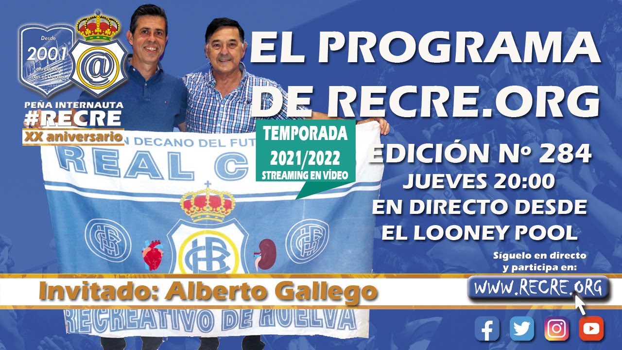 El entrenador del Recreativo de Huelva, Alberto Gallego, será el invitado en la edición nº 284 de El Programa de Recre.org, que se emitirá hoy jueves 18 de noviembre de 20:00 a 21:00 horas.