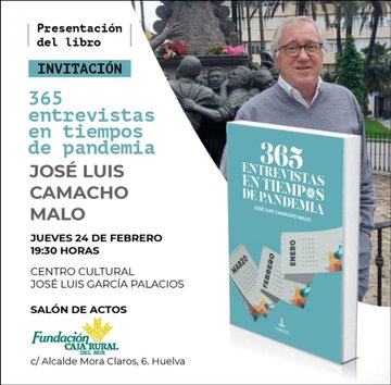 Recre.org Noticia publicada hace 3 añosEl polifacético José Luis Camacho Malo presentará el próximo jueves a las 19:30 horas en el salón de actos del centro cultural José Luis García Palacios de la Fundación Caja Rural del Sur su libro '365 entrevistas en tiempos de pandemia'.