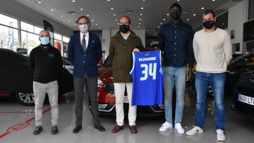 El último fichaje del primer equipo del C.D.B. Huelva La Luz, el ala pívot Mansour Kassé, ha sido presentado en las instalaciones de Conquero Autorenting, empresa dedicada al alquiler de vehículos.