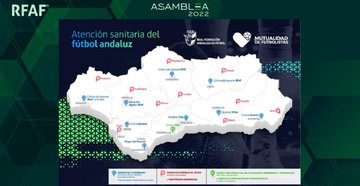 La asamblea general de la RFAF dio a conocer a los clubes el pasado 9 de julio el mapa de asistencia médica con el que Mutualidad de Futbolistas dará cobertura geográfica y en el que amplía de 11 a 24 los centros de servicio médico en Andalucía.