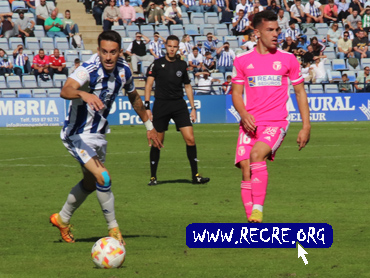 (33') Protesta la hinchada local unas manos inexistentes dentro del área del Recre. Acalla las protestas la afición del Decano cantando "Recreativo oé oé"